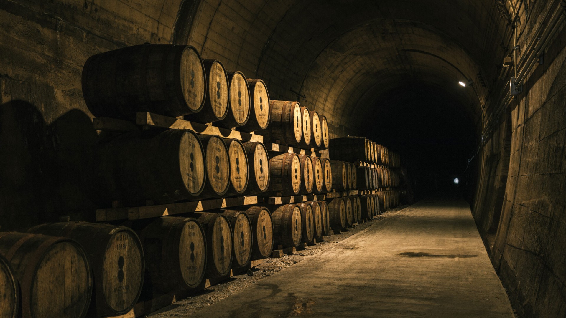 La méthode de maturation de la distillerie Sakurao est unique parmi toutes les distilleries de whisky japonaises. Au fil des ans, l’entrepôt Sakurao, non loin de la mer intérieure de Seto, expose les fûts aux projections marines dans le climat tempéré d’Hiroshima, ce qui ajoute un élément de salinité à l’or liquide qu’ils recèlent. Mais la véritable innovation se trouve plutôt dans l’entrepôt Togouchi. Celui-ci occupe un ancien tunnel ferroviaire de 750 mètres de long dans les collines de la ville voisine d’Akiota. Avec une capacité de 4 000 fûts, il offre un milieu de maturation unique au monde. L’humidité élevée qui règne à l’intérieur du tunnel toute l’année signifie que les fûts capturent la condensation qui s’écoule des parois, ce qui fait que le volume de liquide du fût reste le même tout au long de sa maturation (alors qu’un fût perd en moyenne entre 2 et 5 % de son volume au cours du vieillissement – ce que l’on appelle « la part des anges »).
