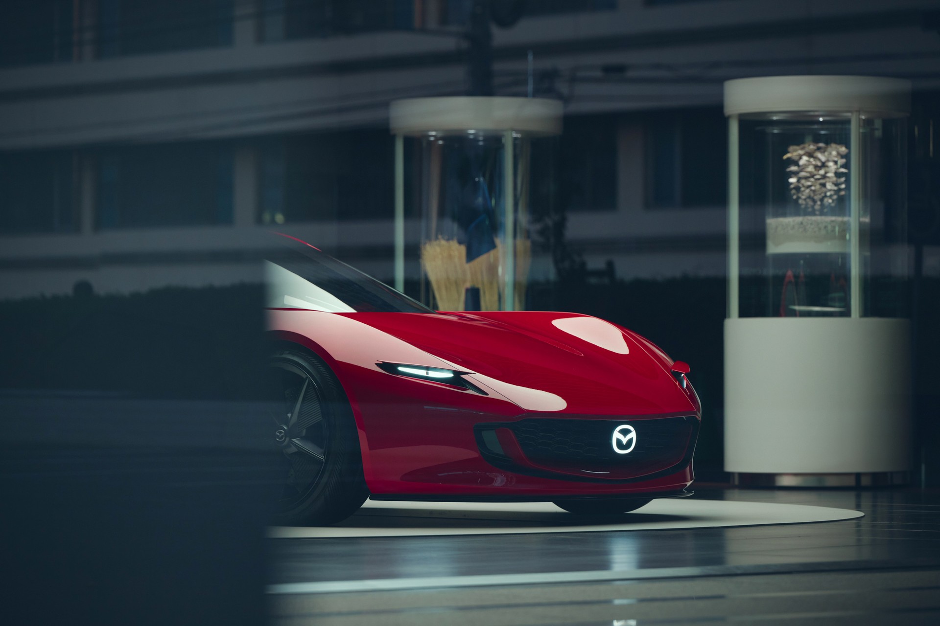 « Rien qu’en regardant la voiture, on imagine le type de moteur qui se cache sous le capot. C’est dire à quel point nous étions déterminés à créer ce véhicule concept. Plus on l’observe, plus la voiture révèle quelque chose, poursuit Saga. Au cours du développement, de la position des portes et des pneus à la longueur du véhicule, en passant par la position assise des occupants et la visibilité, tout a été étudié avant d’aboutir aux spécifications finales. Cela montre vraiment à quel point nous voulions en faire une voiture qui incarne l’engagement de Mazda pour l’avenir, notamment en matière de durabilité et du rôle futur de la technologie de notre moteur rotatif. »
