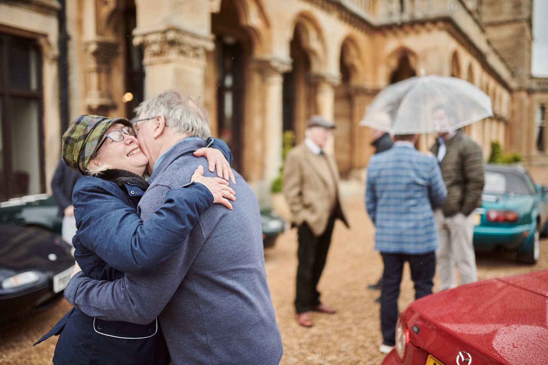 Lorsque les moteurs se taisent, la scène évoque rapidement des retrouvailles d’amis proches ou une réunion de famille émouvante. Ce ne sont que sourires, accolades et salutations joyeuses. Avec le manoir en toile de fond, la conversation s’oriente naturellement vers l’objet de cette réunion dans ce coin de campagne anglaise : célébrer les 35 ans de la Mazda MX‑5, roadster biplace le plus apprécié au monde.